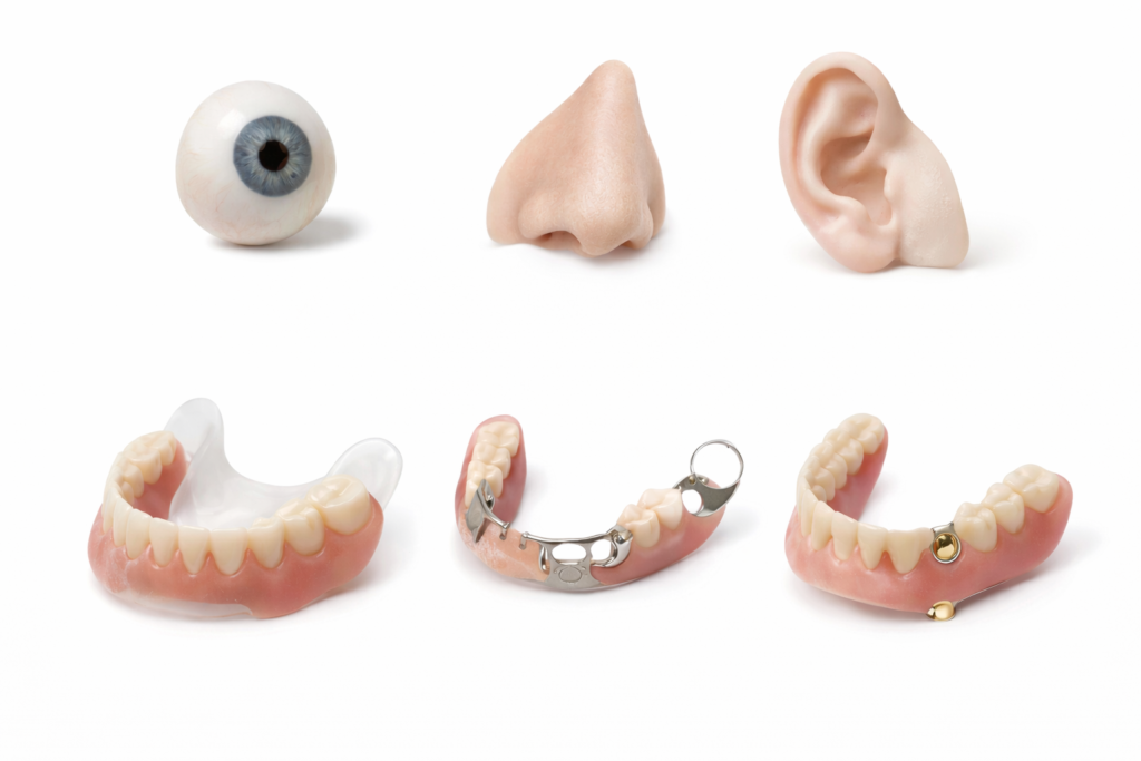 | 眼窩補綴物(がんかほてつぶつ) | 眼球の周囲・目のくぼみ | 義眼を含めて目の自然な見た目を再現 |