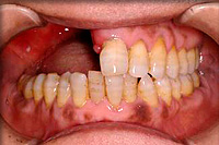 口の中にできる腫瘍には,歯ぐきにできた腫瘍,顎の骨にできた腫瘍,舌にできた腫瘍,ほっぺたにできた腫瘍があります。舌や下あご,ほっぺたを切り取った場合は皮膚や骨を移植しますが,上あごを取った場合,その後移植をしない場合がほとんどです。そのため,上あごを取った場合には鼻と交通しているので穴を塞ぐ装置をはめないと会話や食事ができません。下あごや舌の手術で移植をした場合でもあごと一緒に歯を失う,舌の動きが悪くなって上あごを取った場合と同じように会話や食事に影響が出るため,多くの患者さんが食べにくい・飲み込みにくい・しゃべりにくい・見た目が気になるといった色々な障害を抱えておられます。